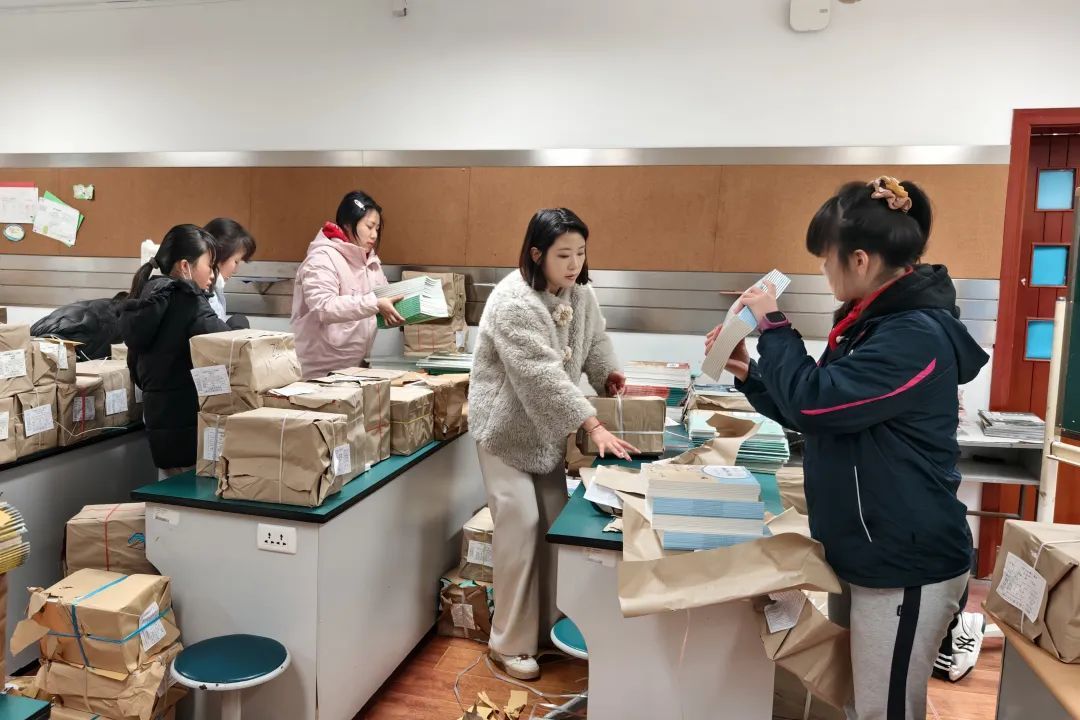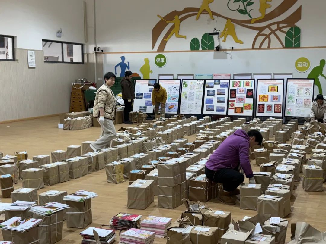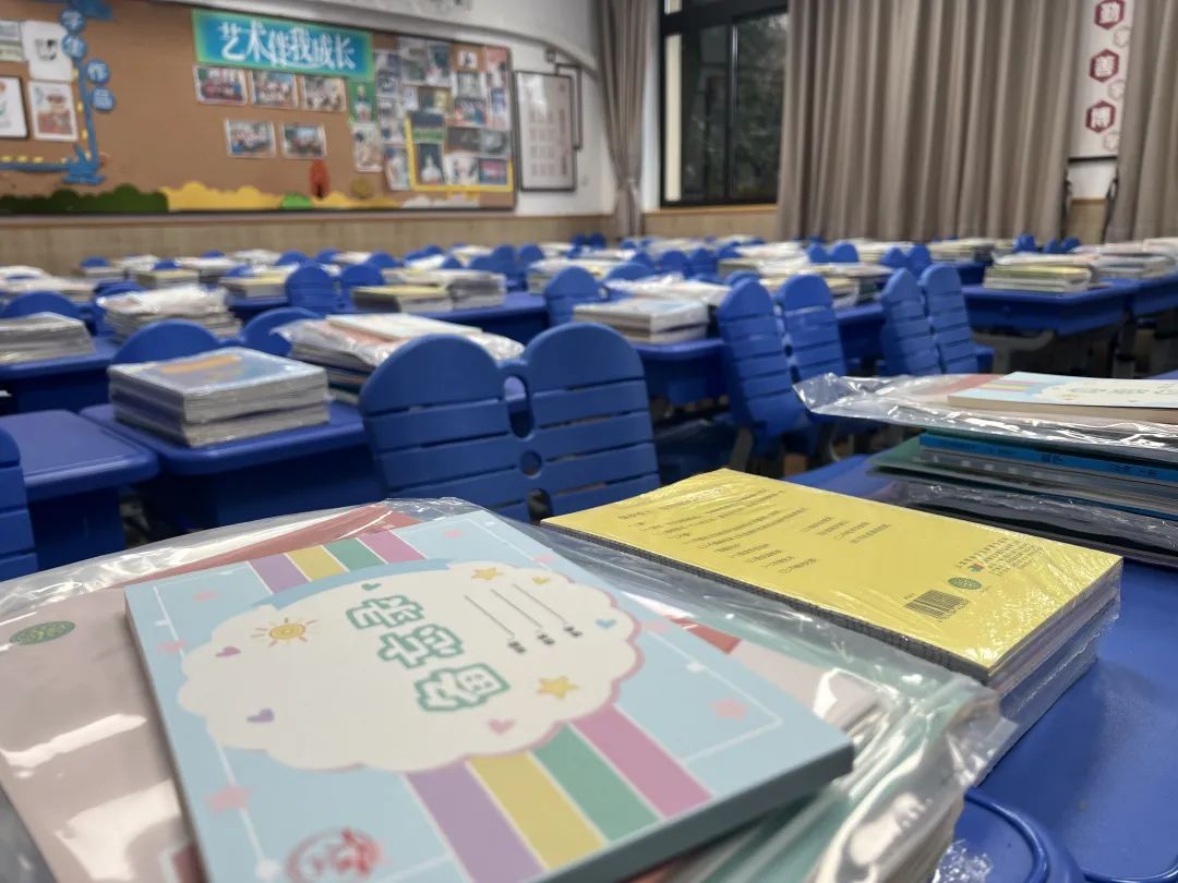 园南中学的教学楼前,“拼搏奋斗 巳巳如意”的祝福语高高挂起,为园南师生送上祝福。校园里,跃动着忙碌的身影。多功能厅里,教工团和后勤保障部按照班级人数分拣教材。一摞摞崭新的课本散发着书香,等待着同学们重返校园。