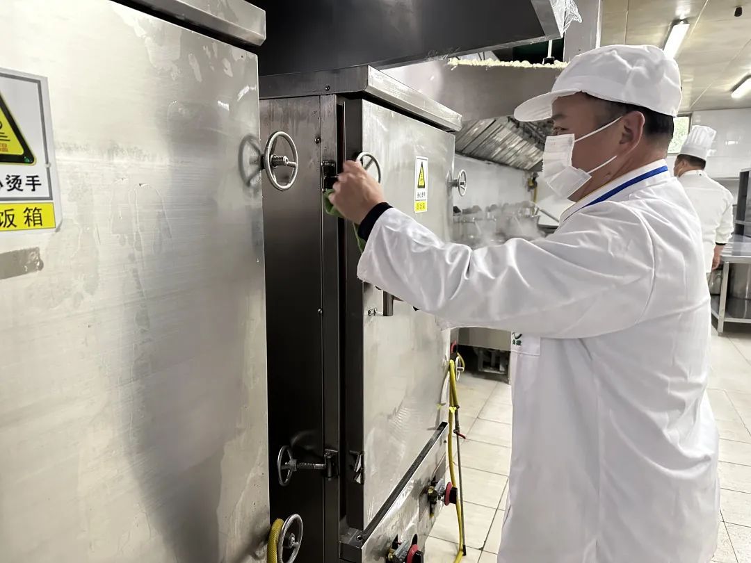 在长桥中学,后勤人员正逐间教室检修吊扇。他们站在梯子上,仔细擦拭着扇叶积灰,对松动的轴承即时更换,为学生提供更加安全、干净、舒适的学习环境。食堂后厨,师傅们仔细检查着烤箱性能,静待开学后启用,为学生提供安全、卫生的餐饮服务。
