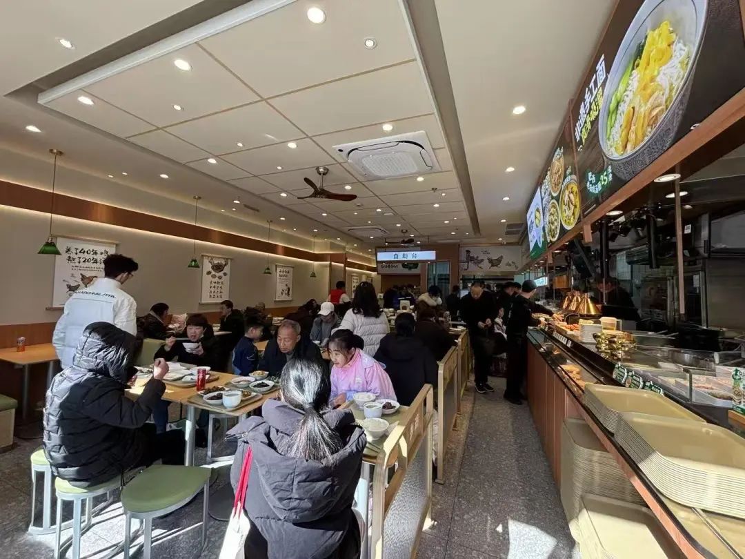 不同于其他老乡鸡门店,该店融合了老乡制面、奶锅及3元自助早餐,打造集多种特色于一体的综合餐厅。此外,门店特别引入“现点现煮”服务模式,顾客可选择面点、小铜锅等餐品,由门店现煮后直接配送至餐桌。这一模式充分考虑到周边以居民为主的消费群体,尤其是老年人和亲子家庭的需求,让就餐体验更加便捷舒适。