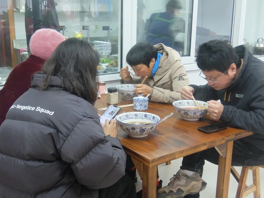 正在一旁吃馄饨的顾客说