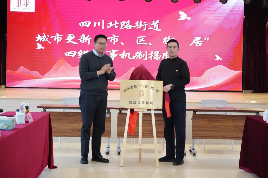 在交流环节,市住建委更新处、区旧改指挥部、四川北路街道分别围绕坚持党建引领、系统集成推进“丰字型”区域更新工作作交流发言,崇邦集团和中州居民区党总支分别作为企业和社区代表,结合本单位参与支持城市更新工作情况,围绕进一步深化党建联建、促进项目共建交流意见建议。