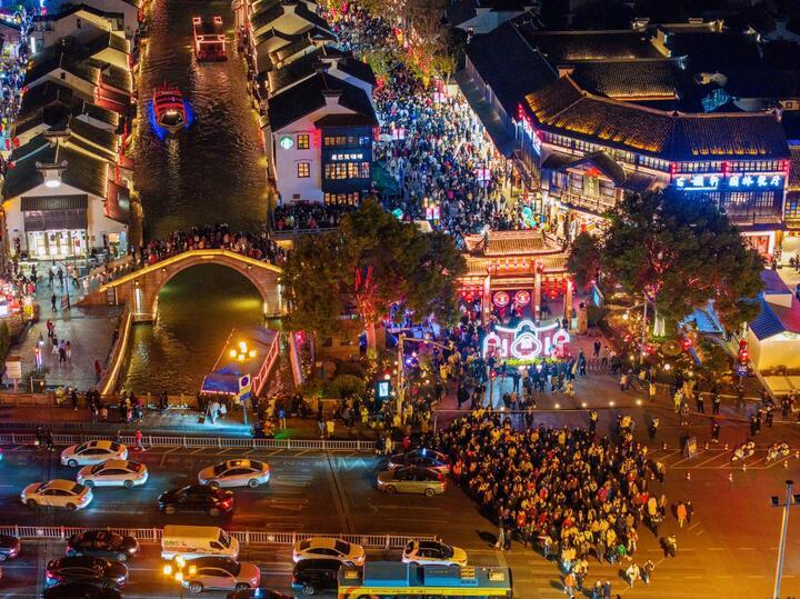 在春节期间,无锡清名桥古运河景区共开展了新春庙会、文创市集、夜间游船等十余场活动,还将春节传统装饰与景区特色巧妙结合,供游客拍照打卡,展现无锡独特的城市魅力,让游客充分感受浓浓的春节气息。