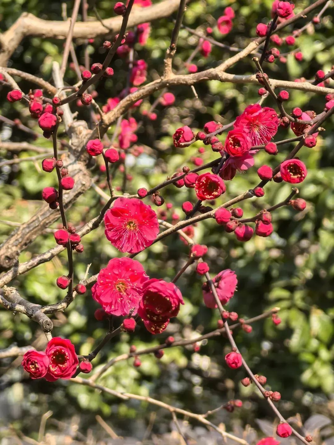 蓬莱公园专业园长介绍,由于年前天气持续干旱少雨,导致今年梅花花期略有延迟。目前园内梅花处于初开状态,预计2月中下旬逐步进入最佳观赏状态。