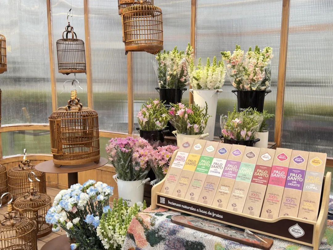 苗圃一侧还嵌入了一间玻璃花房,步入花房同样花香萦绕,阿根廷手工线香品牌Sagrade Madre带来品牌快闪,吸引不少市民闻香而来。