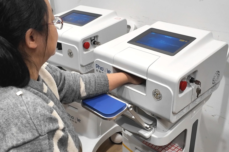 这项具有开创性的无创血糖检测技术,名为多重微空间偏移拉曼散射(mμSORS)光谱技术。陈昌介绍道:“利用这项技术,患者只需将手掌轻轻贴在检测设备上,就能精准测量出血糖数值。它无需个体校准,即来即检,在未来,我们的目标是把它做成‘手表式’的,让患者随时都能测血糖。”