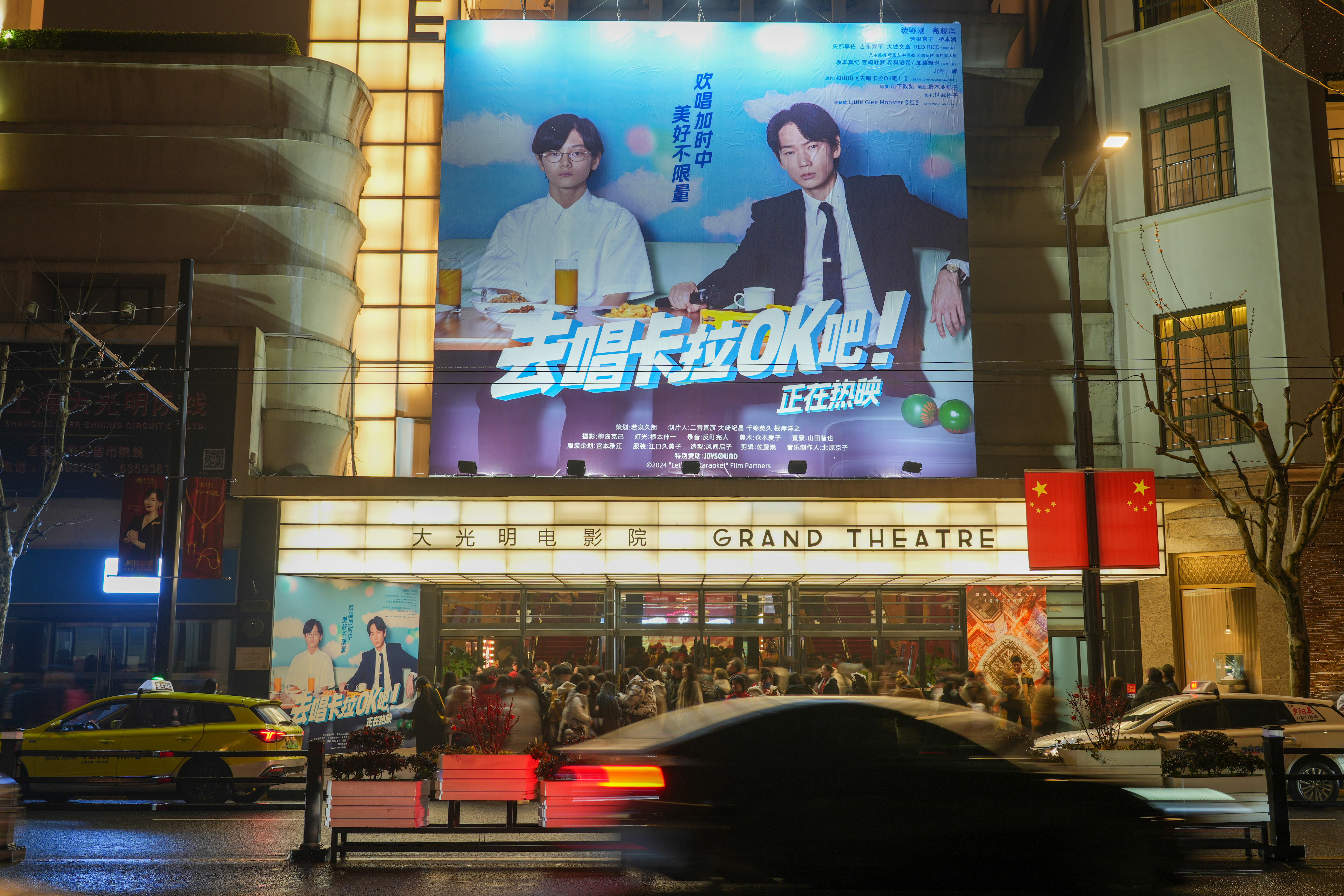 而电影的热度在大光明从未间断。没过多久,海报换成了《去唱卡拉OK吧!》,让人意外的是,影迷们的热情丝毫不减。照样有许多人赶来,新海报前很快排起了长队,大家都想和这张新 “名片” 合影留念。原来电影《去唱卡拉OK吧!》同样来头不小,其在上海国际电影节、浙江青年电影周均创下一票难求的佳绩,豆瓣开画8.2分,成为2024年度豆瓣日影TOP2,同时在第48届日本电影学院奖获得4项提名。不管是专业评价还是大众口碑都相当出色。