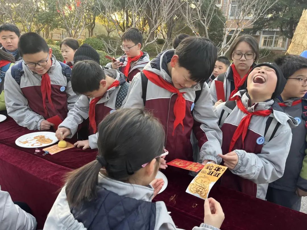 早上7点开始,在奉贤区西渡学校,各年级学生精神饱满地踏入学校,迎接全新的校园生活。校门口,老师们手持精心准备的红包,微笑着迎接每一位踏入校园的学生。有兴趣的同学还可以选择参与一旁的“红包拓福”活动,让传统文化与新年开学欢乐相融。 “我拓印的是蛇年旺旺,我的愿望是新学期各科再加五分。”“我印的是蛇年大吉,我希望新学期数学再考高一点。”“我的红包上拓的是‘送福来’,我就用这个祝福语祝大家在新的一年里、新的学期里,好运连连,福到来。”在活动区,孩子们手握拓包,在金色颜料盘中旋转蘸取,随后轻轻捶打刚收到的红包,揭起模版瞬间,红包封面上就浮现出“蛇年大吉”“福”等各种金色喜庆纹样。 除了“金蛇拓福”迎新活动,古筝社团的同学也在校门口用《桃花笑》欢快地旋律迎接大家的到来。校方表示,民乐迎新是学校的传统,同时,学校每学年也都会安排不一样的传统文化活动迎新,这学期希望继续用“中国式浪漫”唤醒孩子们对新学期的期待,也让传统文化为新学期“印”下温暖序章。 “我们想要用这样的方式,让小朋友感受我们的传统文化、发扬我们的传统文化。”西渡学校党支部书记、校长王芸一边派发红包,一边介绍说:“新的一年里,希望所有学生如灵蛇般锐意进取,在知识的海洋中乘风破浪。” “金蛇拓福”迎开学,西渡学校以一场充满创意和新年气息的活动开启了新学期的序幕,为孩子们的成长道路增添了更多的色彩。