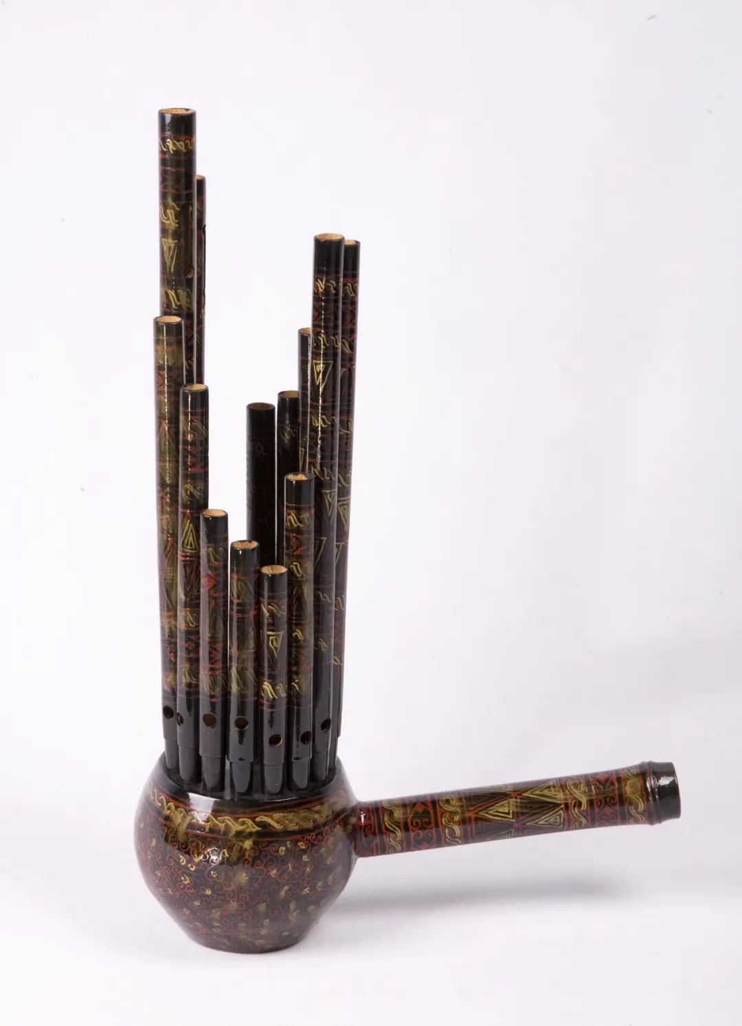 其形与今胡芦笙近似,均由斗、苗(笙管)、簧组成。笙斗为匏质,匏体是在幼匏生长时,用范匏工具将其定型,待长成后再加工而成。