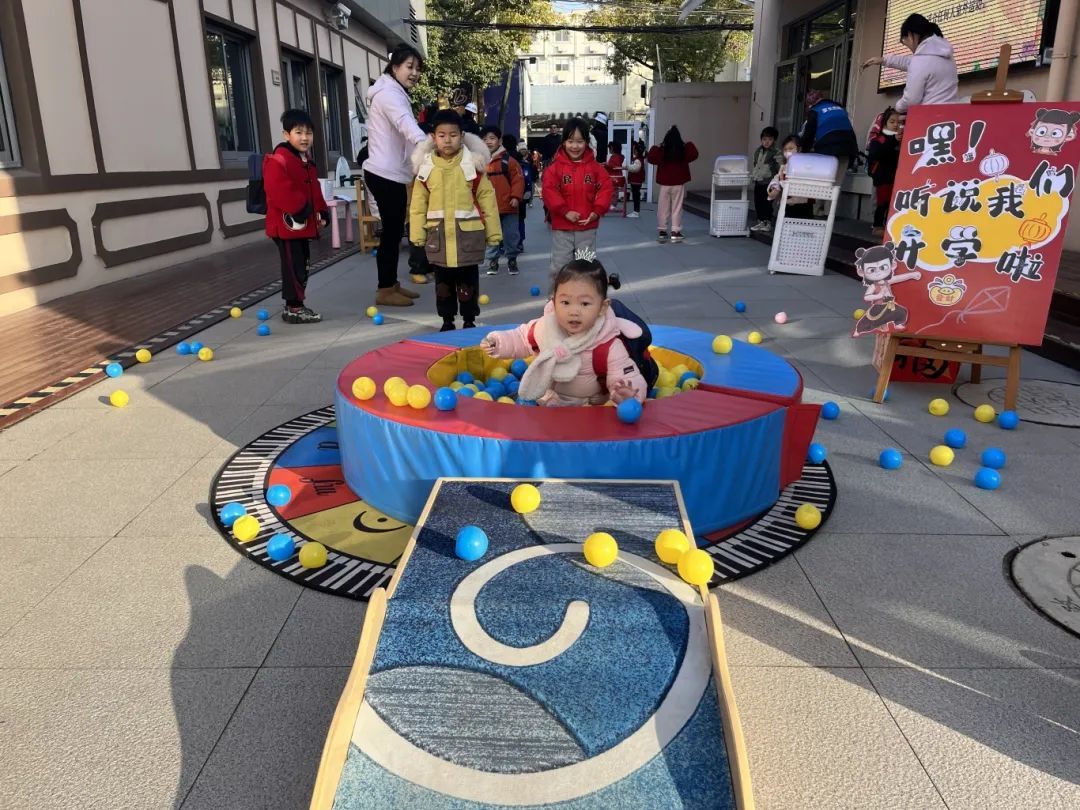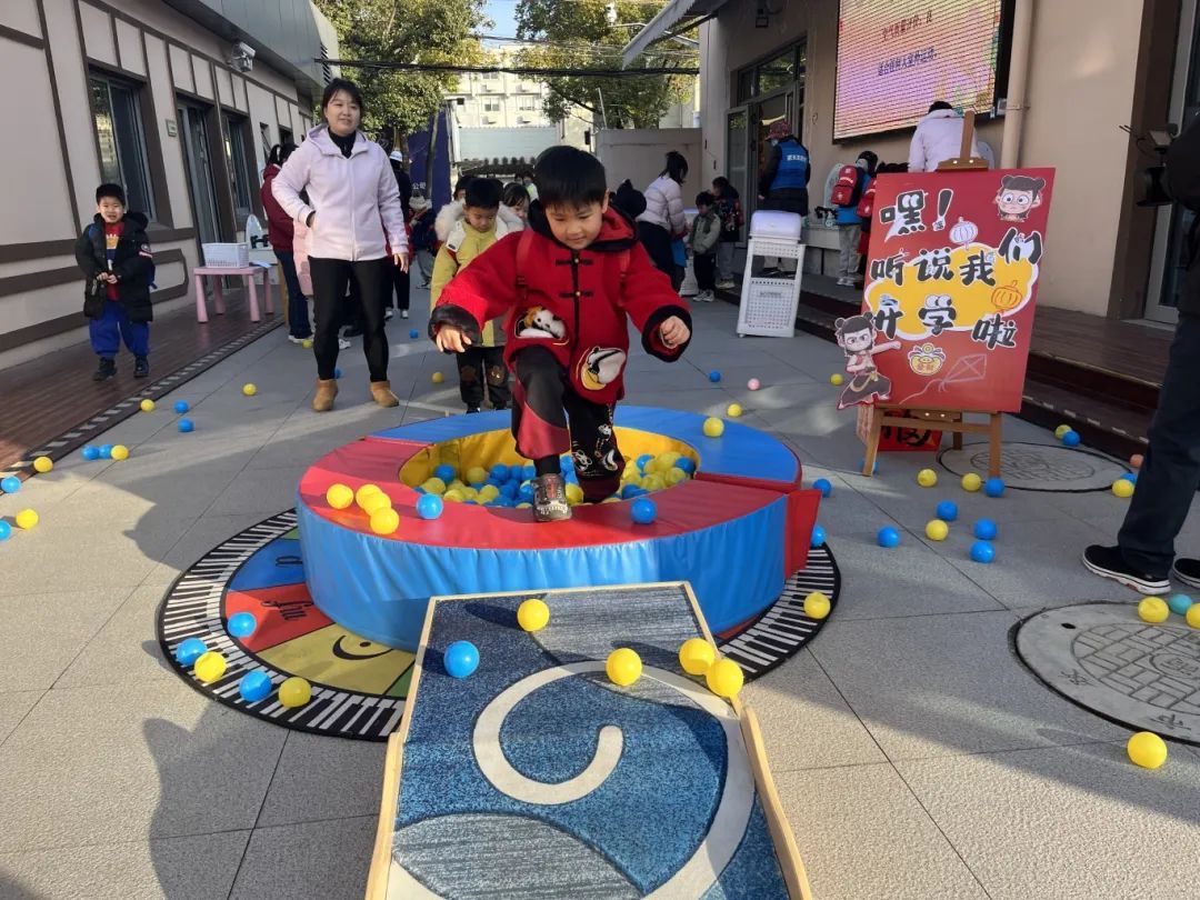 “欢迎欢迎,热烈欢迎!”幼儿园门口,四位“迎新小哪吒”用灿烂的笑容和欢快的语言敲锣打鼓地迎接小朋友的到来。随后,小朋友们来到哪吒闹海、乾坤圈套圈圈、海底世界聚宝盆等装置前,沉浸式参与仪式感满满的开学仪式。大家跨过海洋球,用呼啦圈套圈,从“聚宝盆”里捞走“新年挂件”,红扑扑的小脸上洋溢着对新学期的幸福与期待。