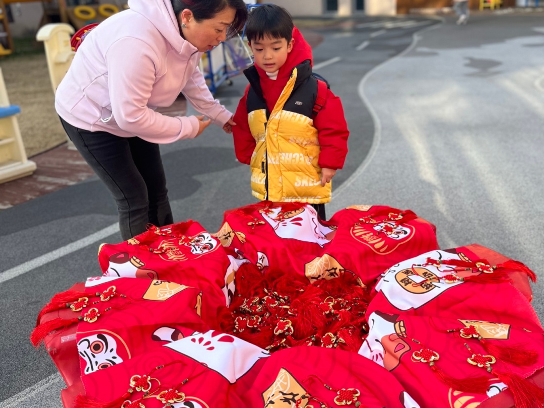 “小哪吒在门口迎接我们很开心很好玩。”小朋友周清言说。