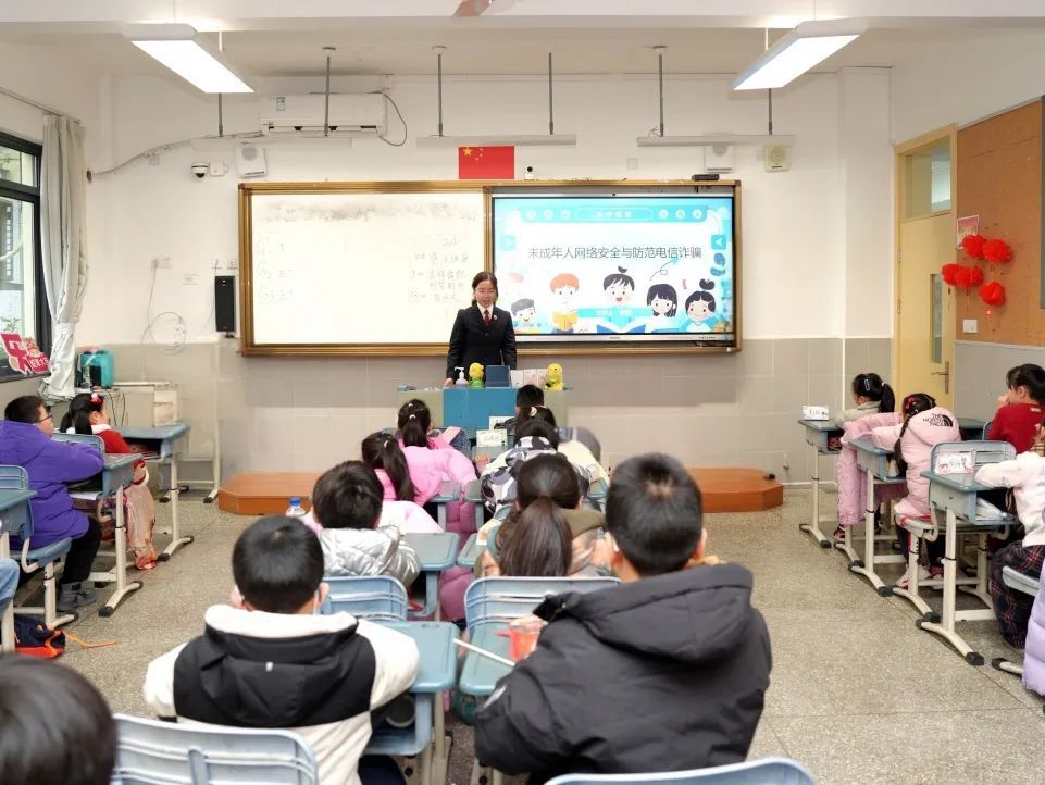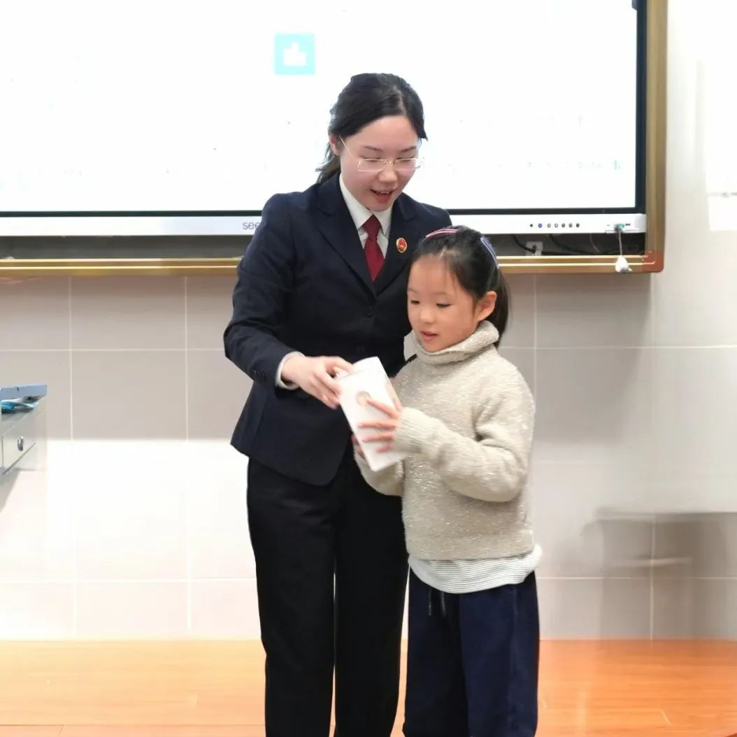 “原来QQ群里送皮肤的‘好心人’是大骗子!”“奥特曼才不会问我要密码呢!”在长宁区周家桥街道,一群小朋友围着检察官,学习防骗秘籍。 未检检察官化身“反诈宣传员”,通过播放主题宣传片、讲解典型案例,将反诈知识总结为“不轻信、不转账、不透露个人信息”三个招式,帮孩子们戴上“防骗金钟罩”。 课程的最后,检察官对小朋友说:“真正能打败诈骗小怪兽的其实不是我们,是小朋友们的‘超级大脑’ 和‘勇敢说不’的超能力!” “检”护成长 提升普法实效,织密防护安全网