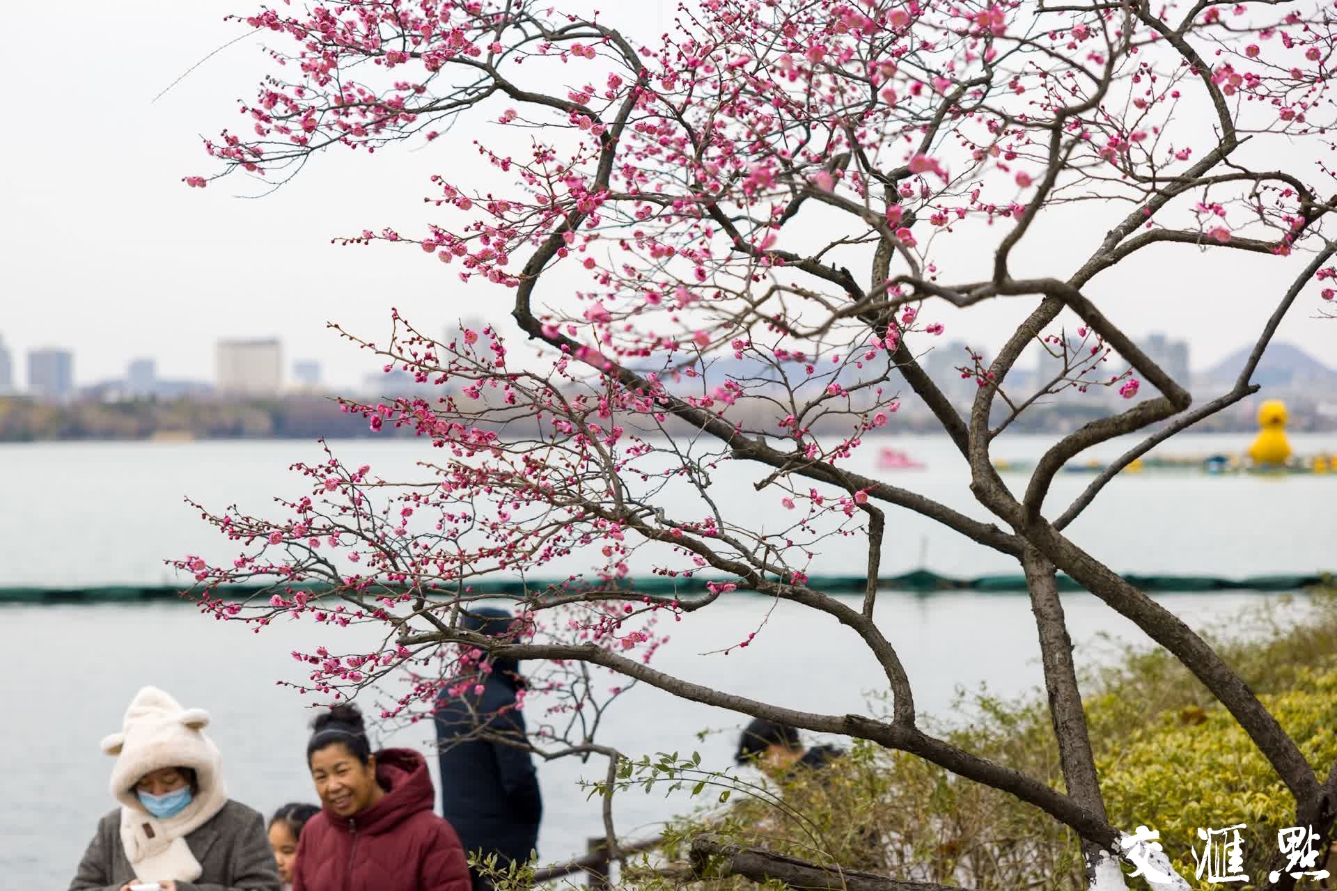 2月17日,南京玄武湖景区内市民和游客沿湖赏梅,仿佛置身于一幅生动的早春画卷之中。 新华日报·交汇点记者 蒋文超 摄