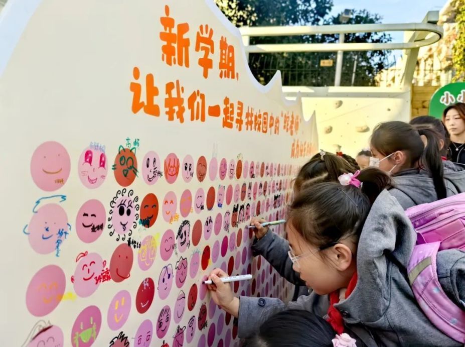 让每一个学生感受到重回校园的幸福,正是竹园小学策划开学日活动的初衷。作为首批上海市儿童友好学校试点校,竹园小学在开学日的细节上下足功夫:书签墙、心愿墙、笑脸墙,三块展板的高度都是为学生量身定做的,张杨校区1100多名学生可自选一种祝福方式,获得开启新学年新成长的仪式感。学校还引入寒假热门电影里的哪吒形象,鼓励学生学习哪吒身上的可贵精神,并在新学期成立“齐迹学院”哪吒分学院,在蛇年为小笋芽们拓展更多学习空间。