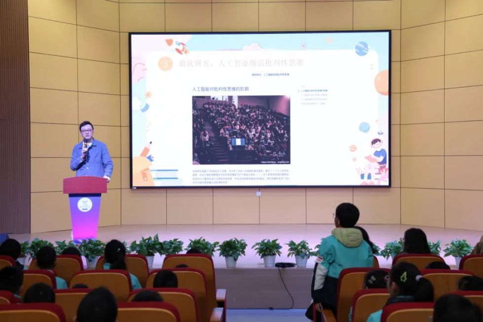 DeepSeek的崛起、游戏《黑神话悟空》和动画电影《哪吒2》的走红……开学首日,东方卫视新闻主播于飞走进浦东新区明珠小学,和师生“聊几件大事”。在“捕捉时代声,明珠耀东方”——新闻课堂项目启动仪式暨“大咖进校园”开学第一课活动中,他剖析了中国在科技和文化领域取得的成就,同时也启发学生去思考人工智能的不断进化带给人类的挑战。讲座后的互动讨论非常热烈,学生们表达了自己的感受:“AI很厉害,我为中国在科技创新方面的实力感到骄傲。”“我以后要多关注时事新闻,提升自己的新闻素养,努力成长为具有批判性思维的世界小公民。”