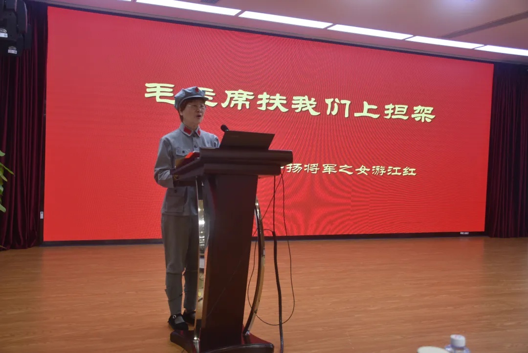 宣讲团成员游江红分享了“毛主席扶我们上担架”的感人故事。直罗镇战役中,她的父亲游好扬将军颈部中弹,伤势很重,毛主席亲自为伤员喂水、铺担架。“主席的嘴唇干裂,却把最后一口水留给战士”游江红动情地说,“这杯水,让父亲铭记了一辈子——官兵一心,便是红军战无不胜的密码。”