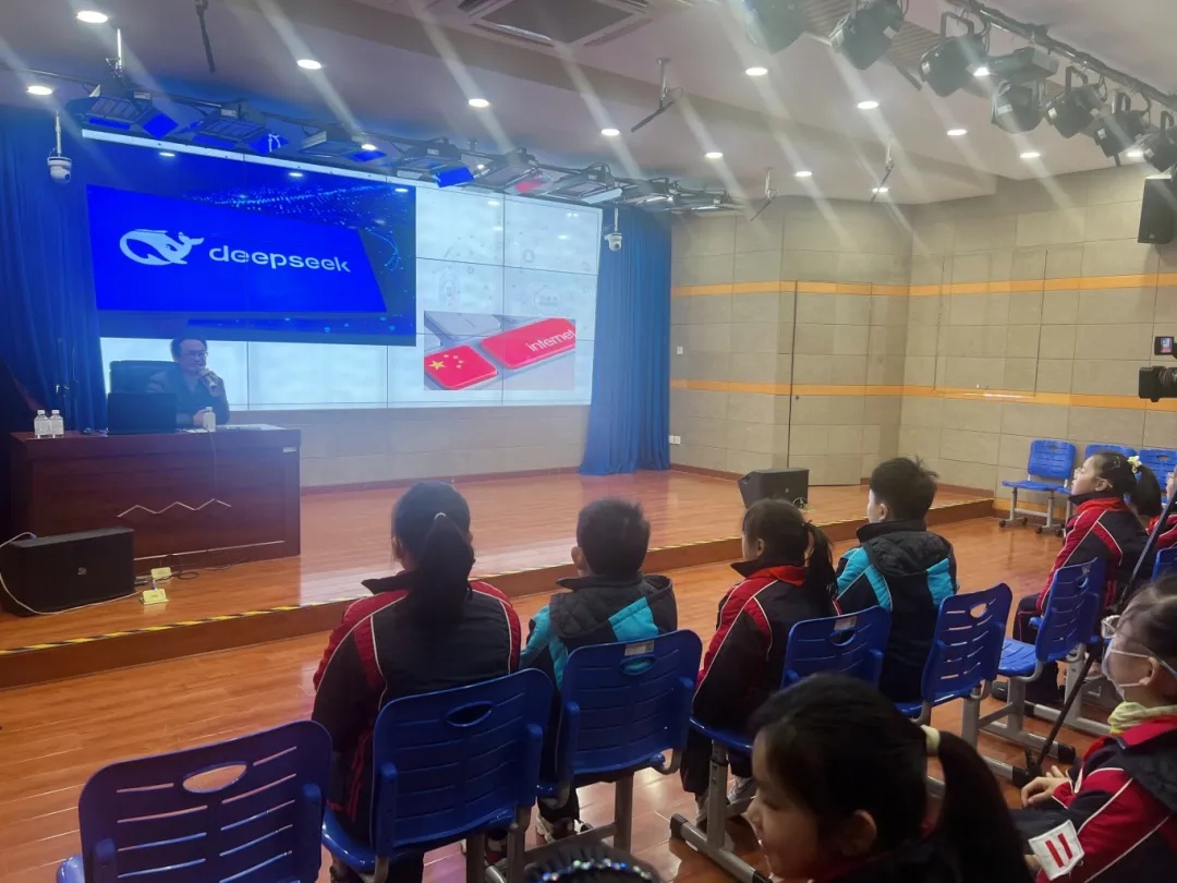 课堂上,陈荔以最近大家热议的国产大模型Deepseek作为切入点,一下子吸引了学生们的注意力。近年来,随着互联网技术的飞速发展,深度学习模型等新兴应用逐步进入大众视野。春节期间,Deepseek更是频频登上热搜,吹起了一股网络大模型应用之风。技术革新给大家带来了便利,但也存在不容忽视的安全风险。有数据显示,青少年触网年龄不断提前,但网络诈骗、隐私泄露、不良信息等问题也随之而来。如何让孩子们在数字时代既能畅享科技红利,又能有效规避风险,是如今社会各界关注的重要议题。