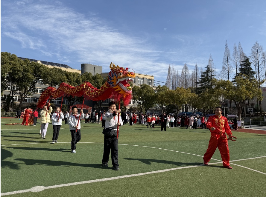 “走起来,再晃一晃。”操场上,在舞龙艺人李师傅的指导下,学生们齐举龙身游走,完成游龙、盘龙等动作。来自五(1)班的庄屹梵体验了龙头位,经过十分钟的练习,庄屹梵已然感受到了当“龙头”的不易,他说:“看着老师们表演挺轻松的,自己舞一会儿就感到累了,感到老师们的表演不容易。”