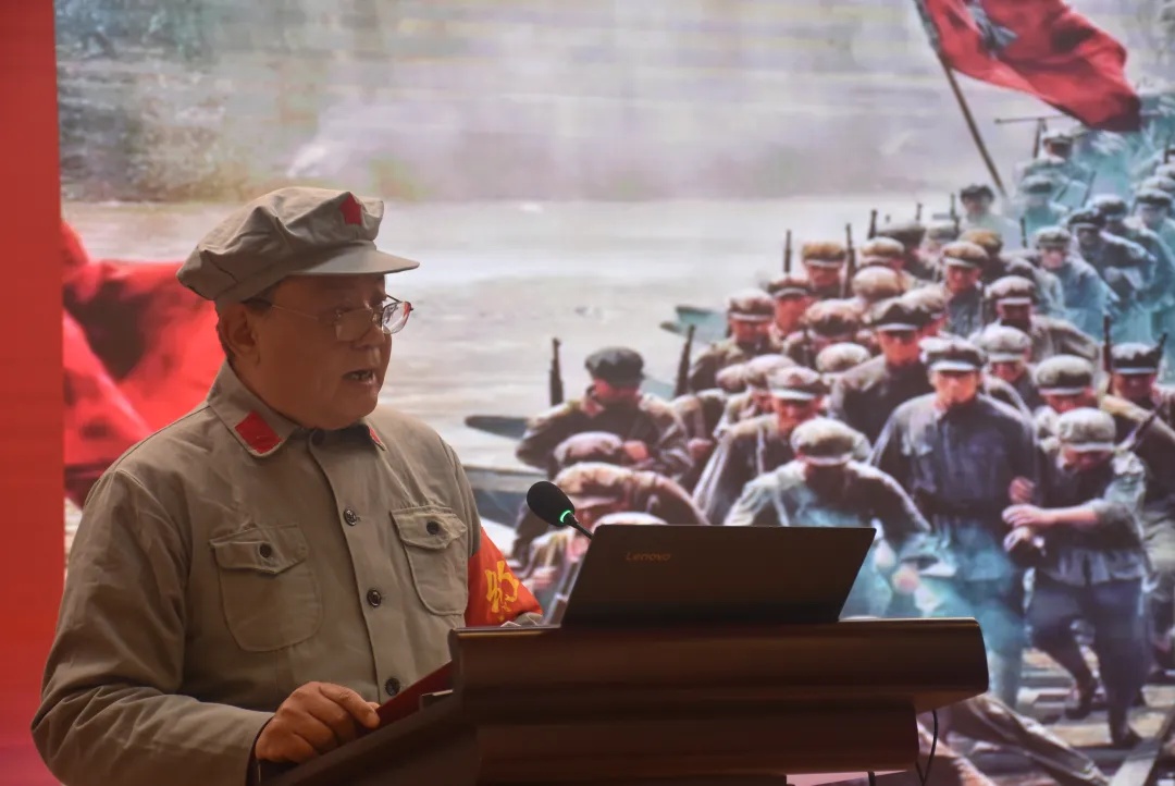 宣讲团团长张培舟以“英雄血染湘江渡”为题,讲述了父亲张宜步将军亲历的湘江战役。1934年冬,红八军团为掩护中央纵队渡江,在敌机轰炸与重兵围堵下死守凤凰嘴渡口。战士们成批倒下,鲜血染红湘江,一万多人的队伍仅剩千余人突围。“当时父亲说,江面漂浮的遗体与枪支,是他一生不敢忘的画面。”张培舟哽咽地说。