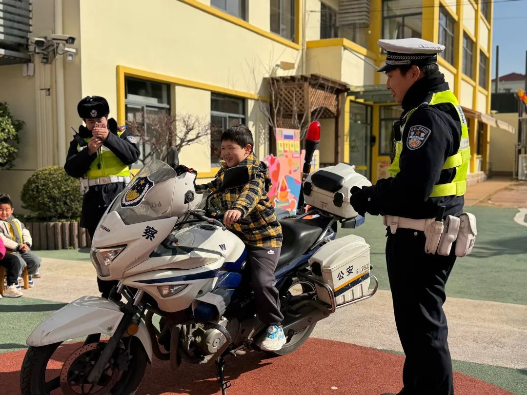 徐汇区长桥第二幼儿园“与安全‘童’行之安全第一课”精彩开课。交警叔叔驾驶着摩托车威风凛凛地进入操场,瞬间点燃了现场的气氛。他们用简单易懂的话语,向孩子们讲解交通安全知识、日常出行中的安全注意事项,现场演示交通指挥手势。小朋友们小手举得高高的,积极回答交警叔叔的问题,体验了一把当“小交警”的感觉,为新学期的安全出行打下了坚实的基础。
