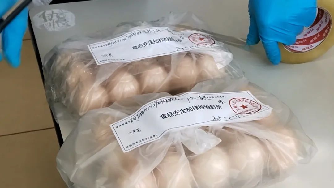 “今天我们还要开展‘你点我检’的活动,由第三方专业人员,随机抽取食品原料,封样送检。”在监管人员夏丹尔的陪同下,第三方检测机构取样人员随机抽取了学校的鸡蛋和青菜样本。“检测的鸡蛋重量要大于1.5公斤,青菜的重量要大于2.5公斤,且非净菜。”第三方检测机构的取样人员完成样品采集后,逐一对样品进行装袋封存。