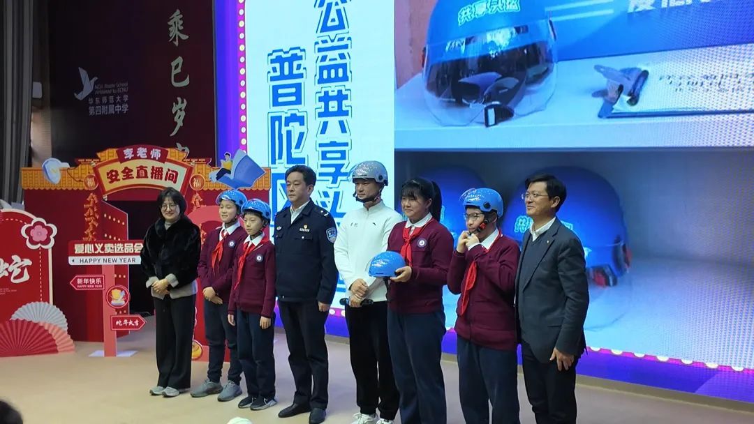 为配合“校园共享头盔”项目顺利启动,上午8点20分,以“争做安全小使者”为主题的“开学安全第一课”主题教育活动正式拉开帷幕。活动现场,内容丰富的“知识巡游”吸引了众多学生和家长的目光。“应急科普展”通过图文展板、实物模型、互动体验等多种形式,生动展示了各类应急安全知识,普及自救互救技能;“学校安全教育成果展”则集中展示了普陀区各中小学在安全教育方面取得的丰硕成果,彰显了学校在守护学生安全方面所做的努力和创新。在教学观摩环节,一堂别开生面的“安全直播课”,巧妙地将安全知识融入到“直播带货”这一新颖形式中,授课老师以“食以安为先、行以盔为要、火情防未然”为主题,通过情景模拟、案例分析、互动问答等环节,深入浅出地讲解了食品安全、交通安全和消防安全等方面的知识。