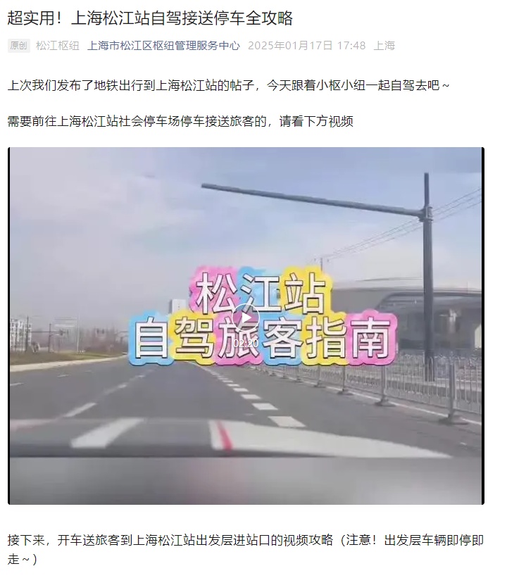 “我们跟各个导航、打车软件都协调过了,目前的情况是软件上定位很详细,但旅客还不懂怎么选。”王清平建议,开车前往南区老站房的乘客,可导航至上海松江站地铁站1、2号口或地下停车场;北区新站房的乘客可定位到东、西落客点。需要注意的是,除了地下停车场,其他点位均是即停即走。后续,相关部门或将与各个网络平台合作,在软件页面设置有关站房和检票口对应的落客点提醒弹窗,让旅客对自己的下车点明明白白。