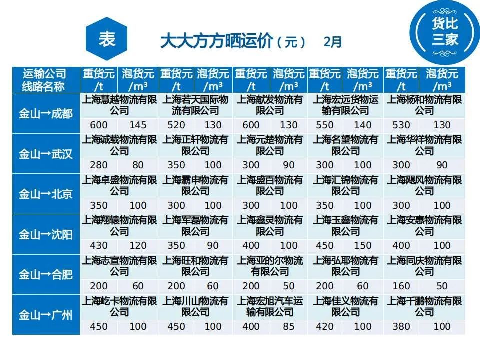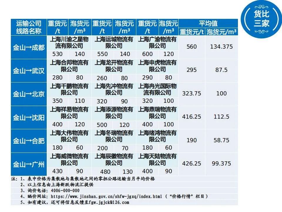 从金山出发,这6条线路运价→