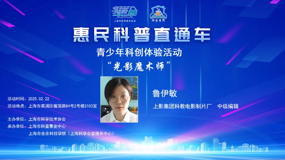 由上海市科学技术协会主办,上海市科普事业中心与上海市业余科技学院(上海科学会堂服务中心)共同承办的“惠民科普直通车——青少年科创体验”系列活动,融合了趣味性与知识性,带领大家走进科学的殿堂,探索那些令人着迷的未知世界!