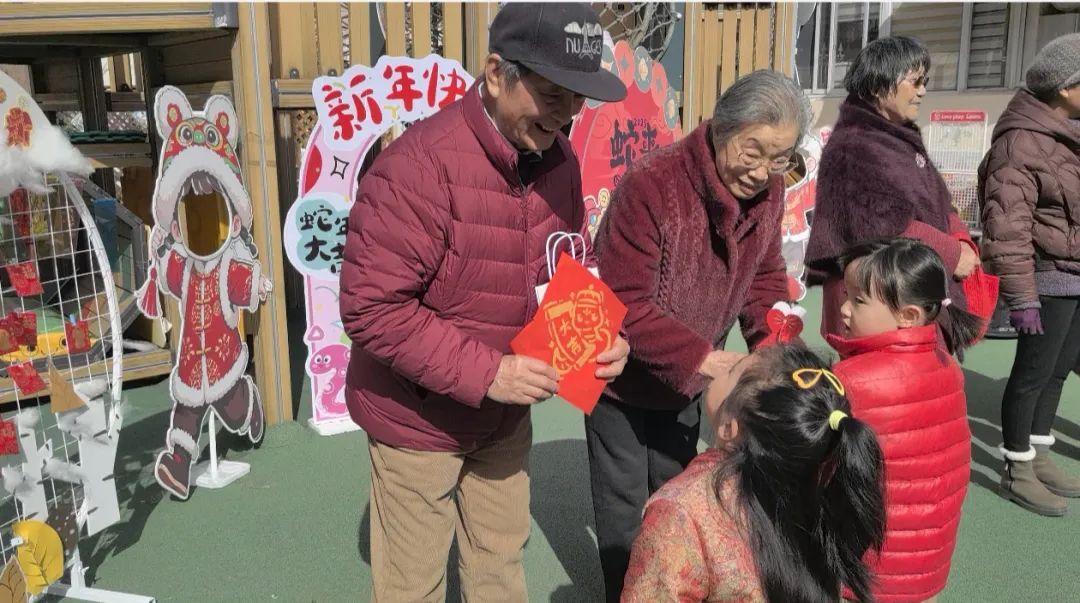 活动当天,托小班的孩子们身着节日盛装,用稚嫩的声音向爷爷奶奶们拜年,并亲手拓印“福”字、送上象征平安的新年苹果。孩子们真诚的祝福让现场暖意融融,朱爷爷感慨道:“看到孩子们的笑脸,仿佛看到了春天的希望。”