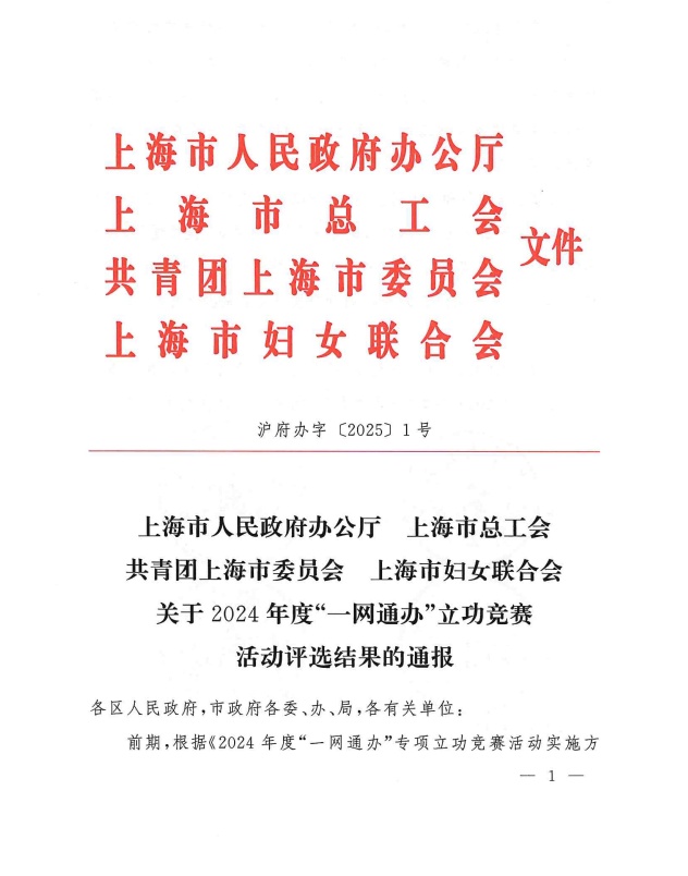 立功竞赛展风采,政务服务谱新篇!近日,市政府办公厅、市总工会、团市委、市妇联联合下发《关于2024年度“一网通办”立功竞赛活动评选结果通报》(沪府办字〔2025〕1号),奉贤区这些集体和个人获奖啦!