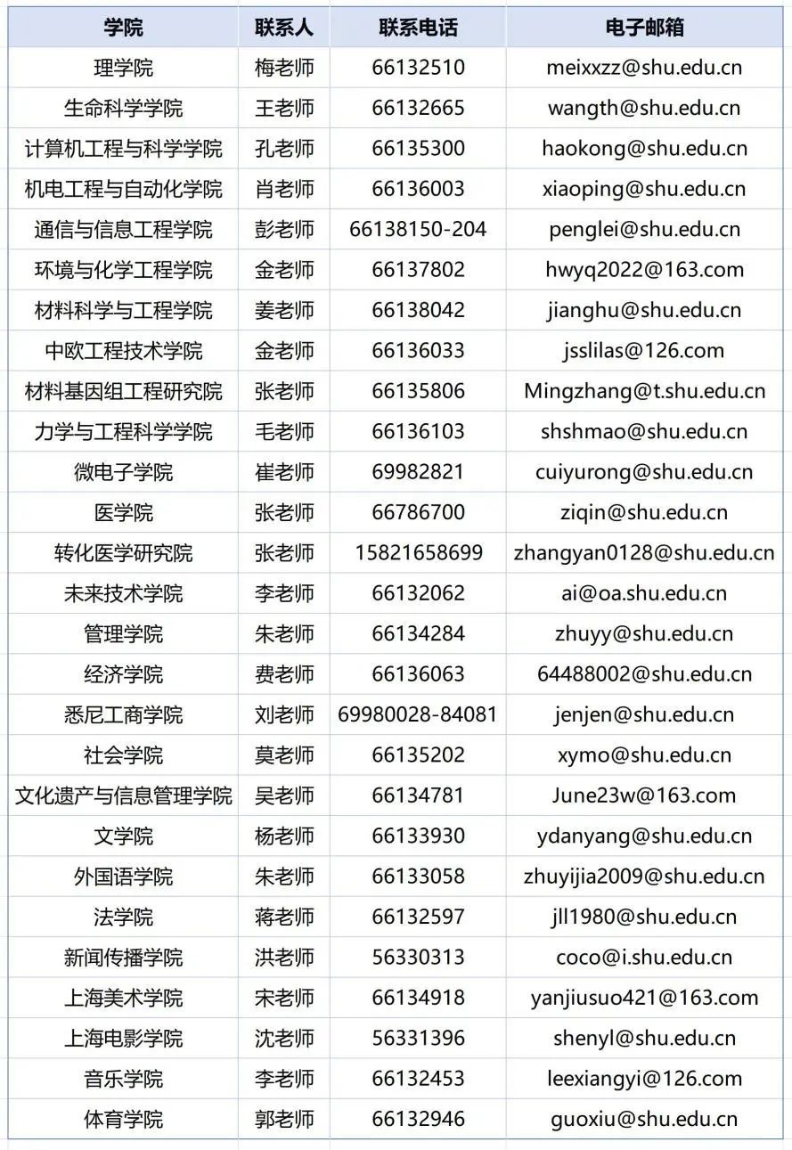 上海大学各学院联系方式,欢迎咨询!