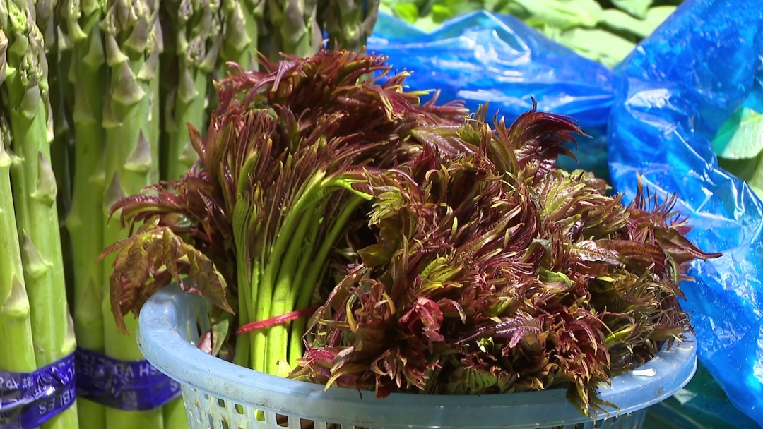香椿头被称之为“长在树上的蔬菜”,据传早在汉代,香椿头就作为贡品进献给皇亲国戚。香椿头虽然味苦性平,但含有丰富的蛋白质、维生素、胡萝卜素、磷以及人体必需的铁等微量元素。山东产的香椿头上市后,价格会最便宜,但质量相比要逊色一些。经营户刘女士告诉记者:“今年与去年价格相比差不多。刚上市贵,卖到最后就便宜了,但是现在是最嫩的时候。这个就吃个两三个月,吃完了就结束了,一年一次。”