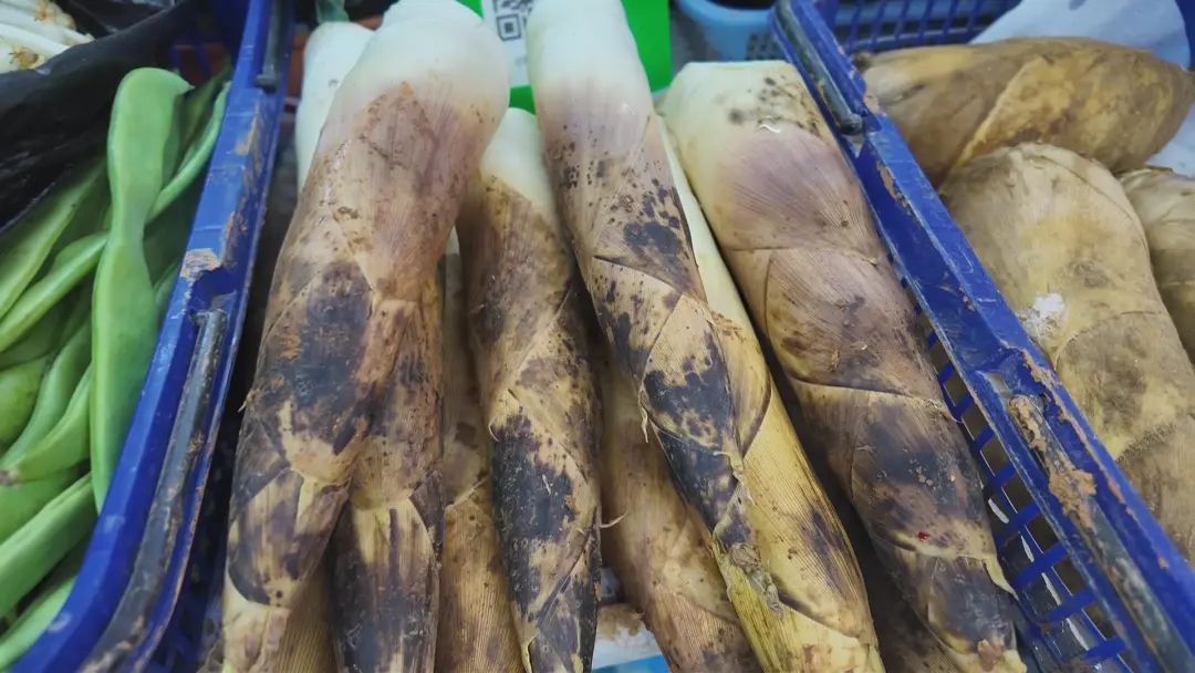 除了香椿头之外,鲜嫩肥美的浙江富阳的黄泥春笋在摊位上也是夺人眼球,立春后采挖的笋以其笋体肥大、洁白如玉、肉质鲜嫩、美味爽口被誉为“菜王”。笋肉的颜色越白,说明越嫩。在烹调时无论凉拌、煎炒还是熬汤,都鲜嫩清香,是春季人们喜爱的佳肴之一,被称为“山八珍”。价格在10多元到20多元不等。