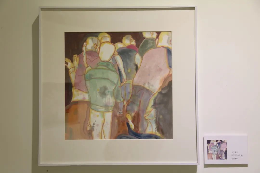 展览现场,一幅幅画作错落有致地悬挂在墙上。作品将真实的生活场景进行艺术化提炼与升华,呈现出全新的视觉画面。雨中行色匆匆的行人、地铁中酣睡的上班族、旅行回家的温馨时刻以及清晨买菜归来的邻里寒暄……这些看似平凡的场景,在陈晓峰的笔下变得生动而富有感染力。