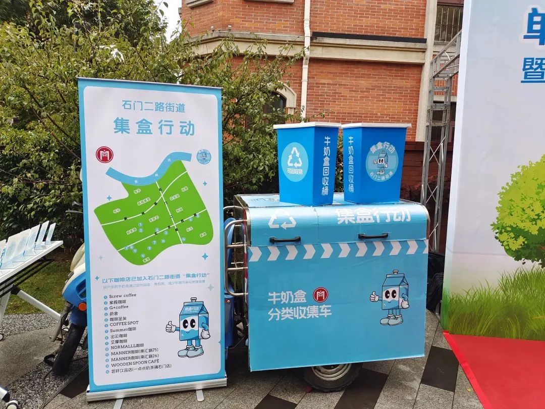 石门二路街道连接着热闹的南京西路和美丽的苏河湾,不少精品咖啡店聚集于此,同时也产生了大量废弃牛奶盒、纸杯等垃圾。牛奶盒、纸杯等属于低价值可回收物,回收利用难题一直不好解决。