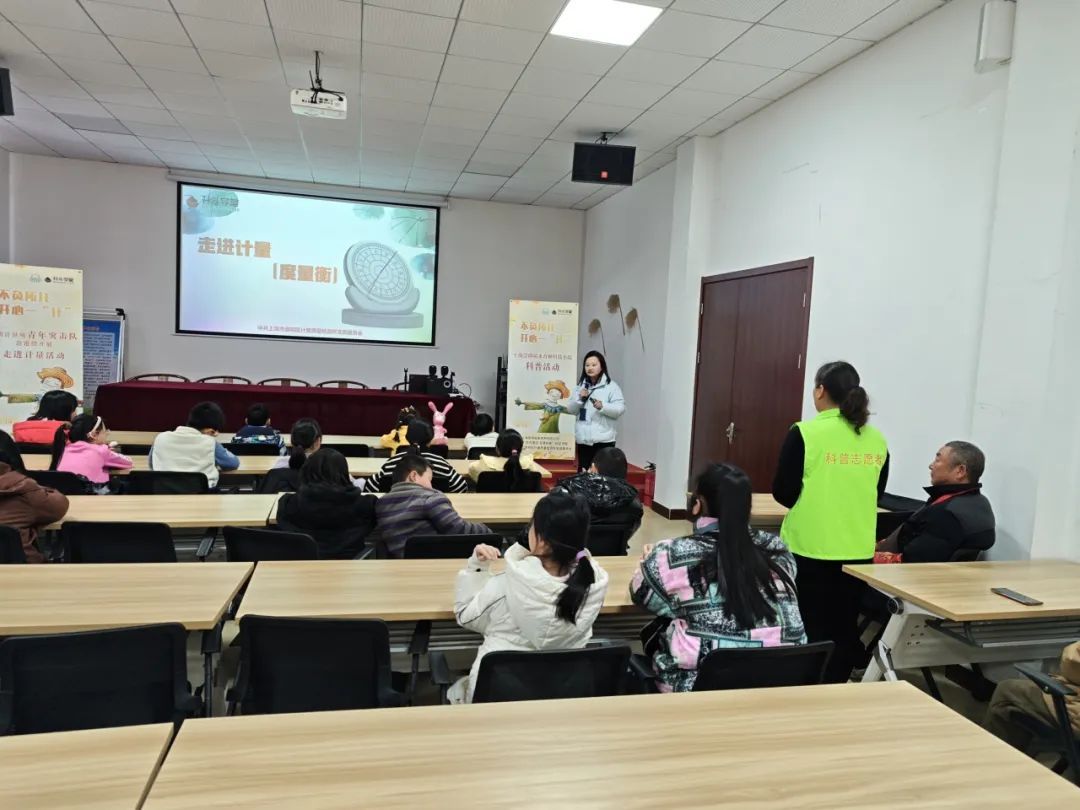 为激发青少年在生活中感受和学习计量知识,2月13日,崇明区港沿镇科协、镇妇儿工委和港沿市场监督管理所邀请崇明区计量质量监测所党支部,在上海崇明稻米育种科技小院开展“不负所托,开心一‘计’”主题科普活动,通过“学、寻、做、测”四维实践,带领青少年学习“计量”的“往事今生”。 趣味课堂点燃科学火花 活动伊始,区计量所李文玥老师通过互动问答和趣味动画,生动阐释计量的定义与历史,带领同学们了解计量的基本概念,包括计量的定义、分类及其在日常生活中的应用。 实践探索解锁计量密码 在“发现计量”环节,陈诗怡老师带领学生化身“计量侦察兵”,分组搜寻教室内的计量工具。青少年们用卷尺比对桌椅尺寸,甚至发现投影仪上的亮度参数也适用计量应用。“原来科学就藏在眼皮底下!”同学们兴奋地说道。随后的“制作计量”创意工坊中,陈曹龙老师指导同学们用纸杯、筷子制作简易天平,将橡皮擦、文具盒作为砝码进行称量比拼,在实践中领悟杠杆原理的精妙。 田野丈量践行科学精神 最后,张嘉玲老师带领同学们走出教室,来到户外,进行一场土地丈量活动。同学们手持测量尺,走进稻田,实地丈量稻株高度,记录数据,感受科学严谨。随后,大家围坐一起,分享心得。青少年们纷纷表示要将所学应用于生活,让科学精神薪火相传。 今后,镇科协将持续立足各级科普阵地,凝聚各方力量,助力科技教学、科普宣传在社区生根发芽,营造人人爱科技、学科技、用科技的良好的氛围。