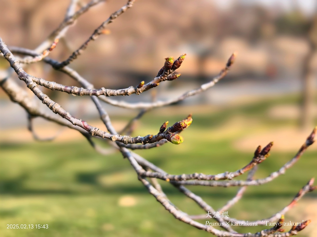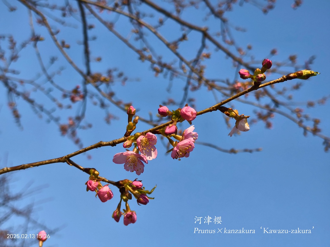 根据花芽萌动的进程来看,河津樱目前正处于芽鳞开裂露出总苞片的阶段。对照历年的物候记录并结合未来半个月的天气预报,如果2月下旬未出现最高气温超过20℃的晴好天气,粉色的梦幻河津樱大道在2月与我们相遇的可能性不大。但是会和樱花园其他的早樱品种一起,在2月下旬陆续进入初花期,在3月里带来最浪漫的春天。