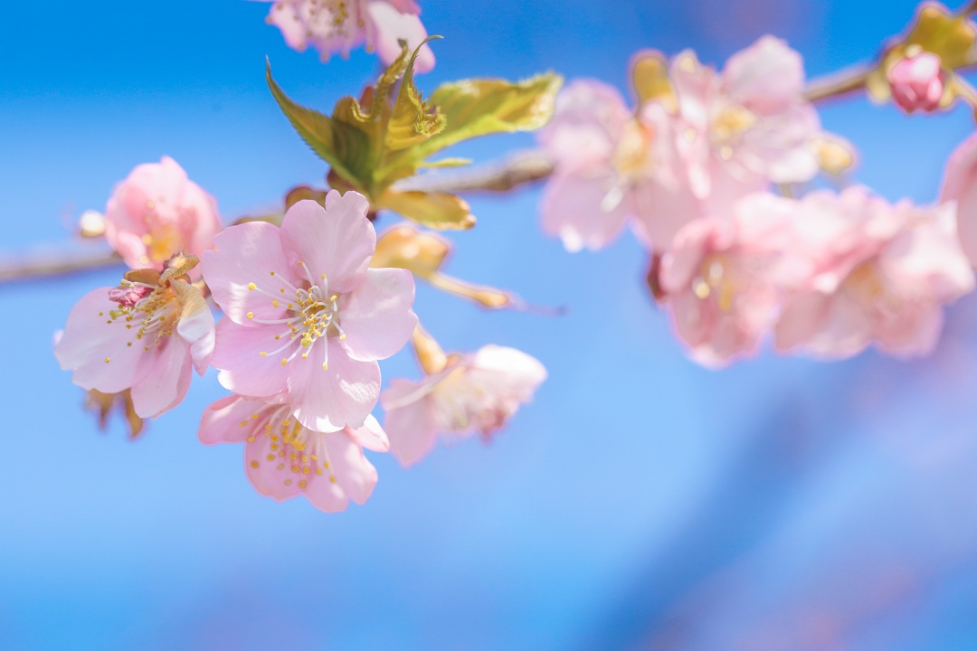 虽然只是零星绽放,但是在碧绿色草坪的映衬下尤为显眼,经过樱花大道的游客都第一时间被吸引。这些最先开放的樱花有早樱家族里的寒樱和河津樱。