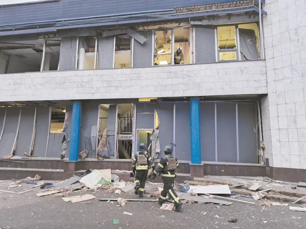 1月18日,在乌克兰首都基辅市,乌国家紧急情况局工作人员在受损的建筑内搜救。新华社发