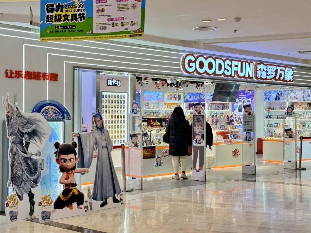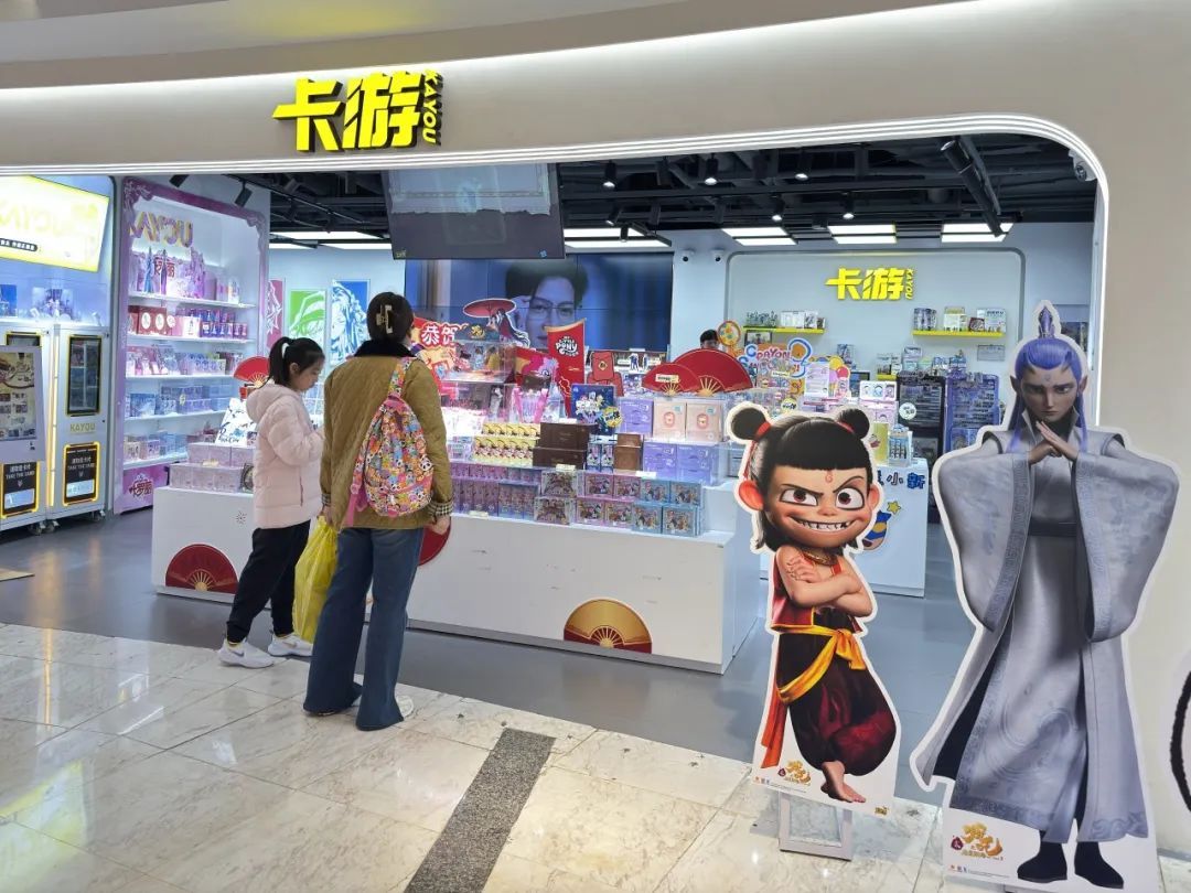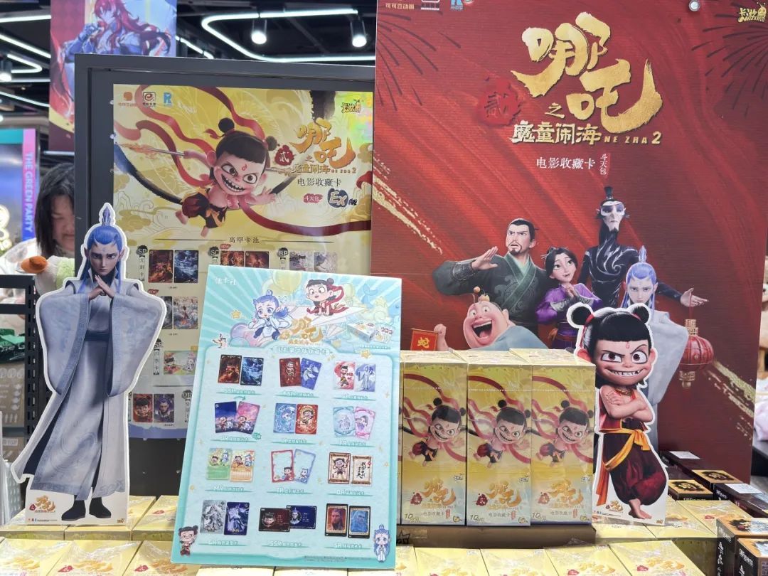 在潮玩聚集地静安大悦城,南座3楼的森罗万象、卡游、THE GREEN PARTY PRO等潮玩店门口都摆出了哪吒立牌。记者咨询得知,目前,各家店铺仅剩少量哪吒相关卡牌、手办,补货时间待定。