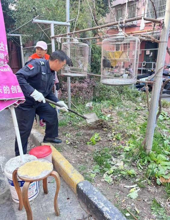 为深入推进“六微六美”行动,宝山区张庙街道虎二居民区联合城管、物业开展“还绿于民,共建美好家园”专项整治行动。