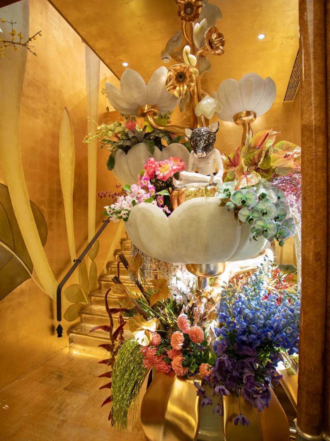 野兽派首家中国工坊店在新天地正式开幕,它的概念是“月光宝盒”。门口珠帘玉树垂幕,梧桐窗景,海棠依旧。走进一楼空间,会发现四只可爱的玉兔,它们分别代表春夏秋冬,野兽派的明星香氛也以四季主题铺陈展开。