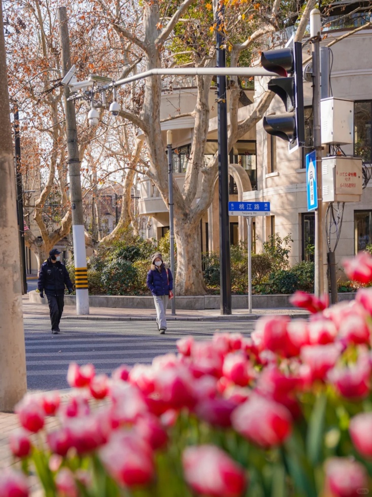 宝庆路与衡山路口,春日的阳光暖暖倾洒。街角那片绚烂的郁金香,宛如一群灵动的精灵,在微风中轻轻舞动。