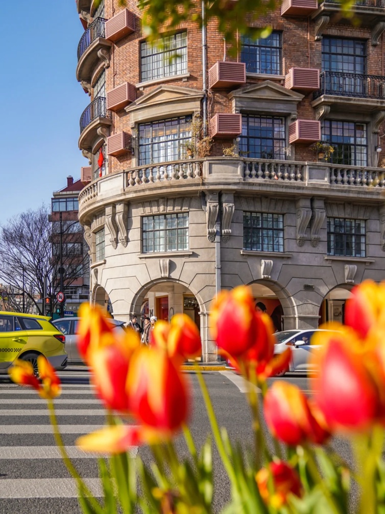 当“网红”打卡地武康大楼遇上烂漫的郁金香,一场复古与诗意的邂逅就此展开。标志性船型建筑的脚下,五彩斑斓的郁金香肆意绽放,与古朴的大楼相映成趣,仿佛时光在此刻交织。
