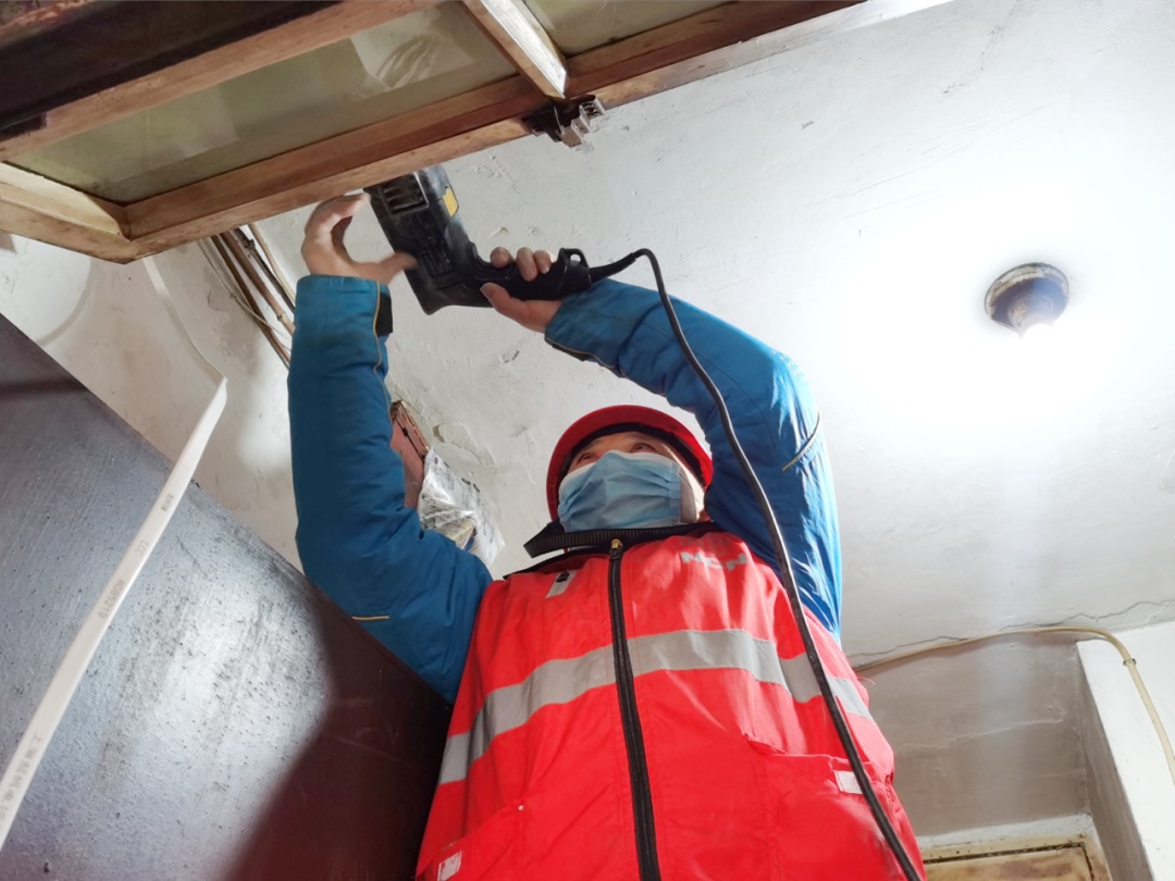 独居的陈爷爷便是众多受益人之一。陈爷爷在北新泾居住了30多年,房屋老旧且一直未重新装修,厨房内部分电线老化裸露,存在极大安全隐患。新程物业维修人员无惧老人家中厨房空间狭小,架起梯子,熟练地使用冲击钻钻孔,安装插座,精心地将电线穿入PVC管道,再拆下老旧的陶瓷电阀门,换上漏电保护器。施工结束后,还贴心地提醒陈爷爷要注意用火用电安全。看着全新铺设的线路,陈爷爷满是感激:“没想到社区和物业有这样贴心的服务,以后用电更安心了。”