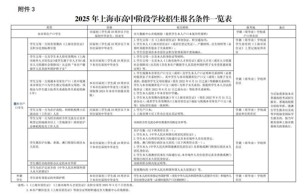 根据《上海市教育委员会关于做好2025年本市高中阶段学校招生报名工作的通知》(沪教委基〔2024〕40号)和《上海市教育委员会关于做好2025年全日制普通中等职业学校自主招收本市初中应届毕业生中来沪人员随迁子女报名工作的通知》(沪教委职〔2024〕47号)文件规定,本市高中阶段学校招生(以下简称“中招”)网上报名及信息确认于2月20日(星期四)开始。