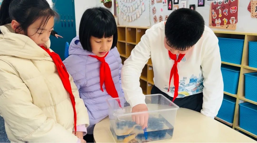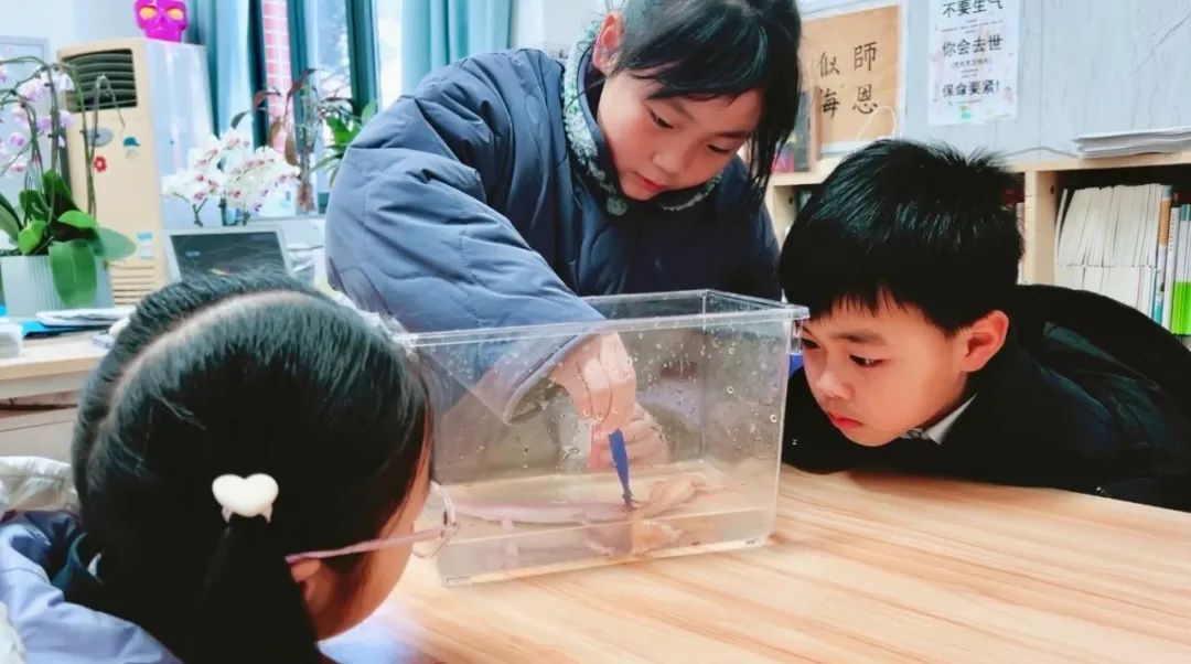 西外小学部的教室里时常能看到,课间,学生们围在班宠小乌龟的玻璃缸前,观察它的生活习性和行为特点;趴在特制的透明蚁盒前,看着蚂蚁们勤劳地挖掘通道、搬运食物……
