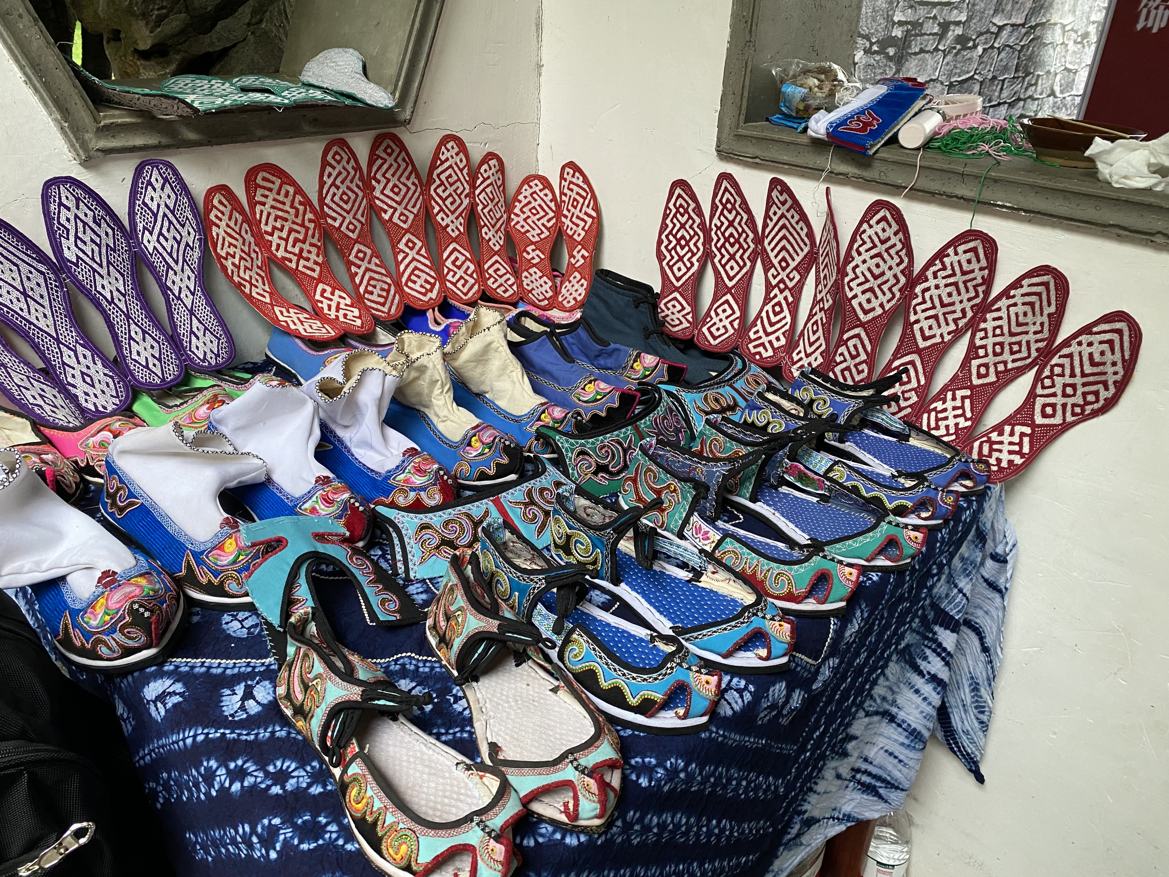 江南一直是我国织造业发达的地区,明朝时期,南京丝织工艺日臻成熟,在西迁中,手工艺者也将丝织技艺带到了贵州。这些技艺、花样、材料展现在了现在屯堡妇女的绣花鞋、腰带上、饰品上,让屯堡服饰成为屯堡文化独特的风景。