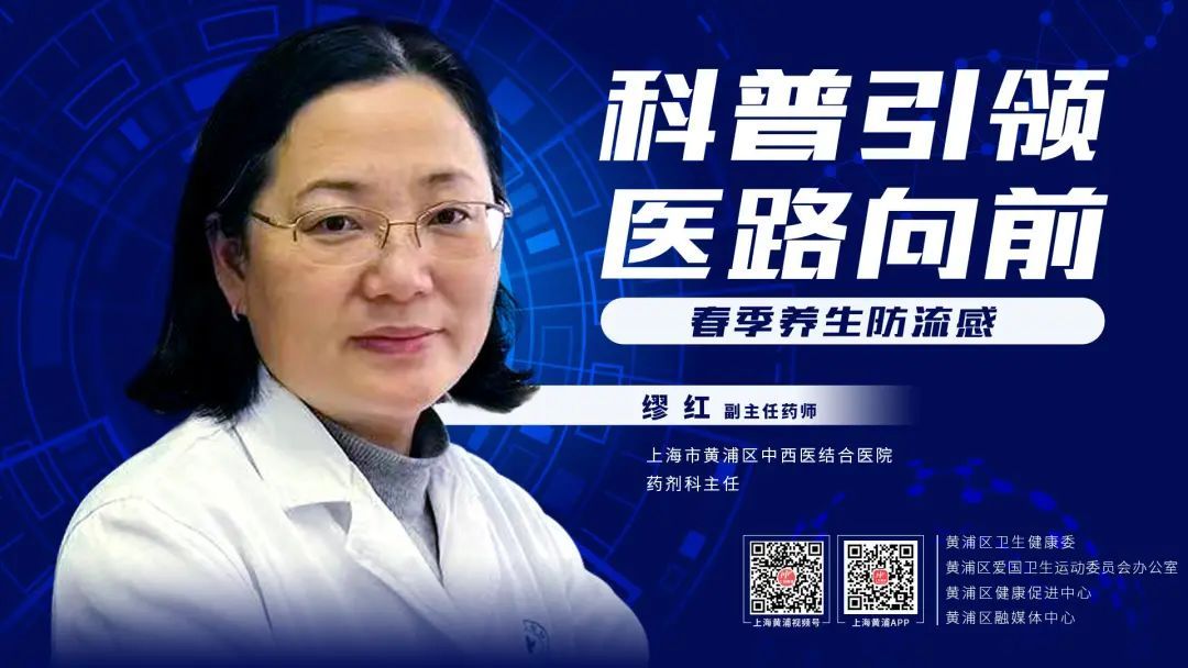 本次邀请的专家是上海市黄浦区中西医结合医院药剂科主任缪红,她将与我们科普如何在享受春日美好的同时,有效预防流感,保持身体健康,并提醒广大市民通过调整作息、合理饮食、保持心情愉悦等养生方法,增强自身免疫力,有效对抗流感病毒的侵袭。