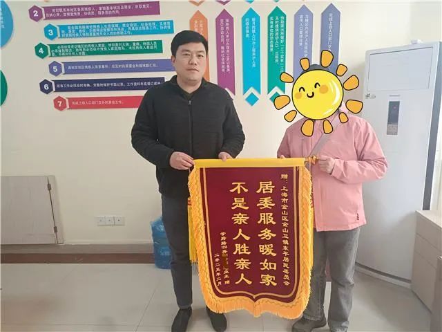 2月17日下午,家住正荣御首府小区的居民李敬玉将锦旗送到了金山卫镇东平居委会,向工作人员表达了感激之情。